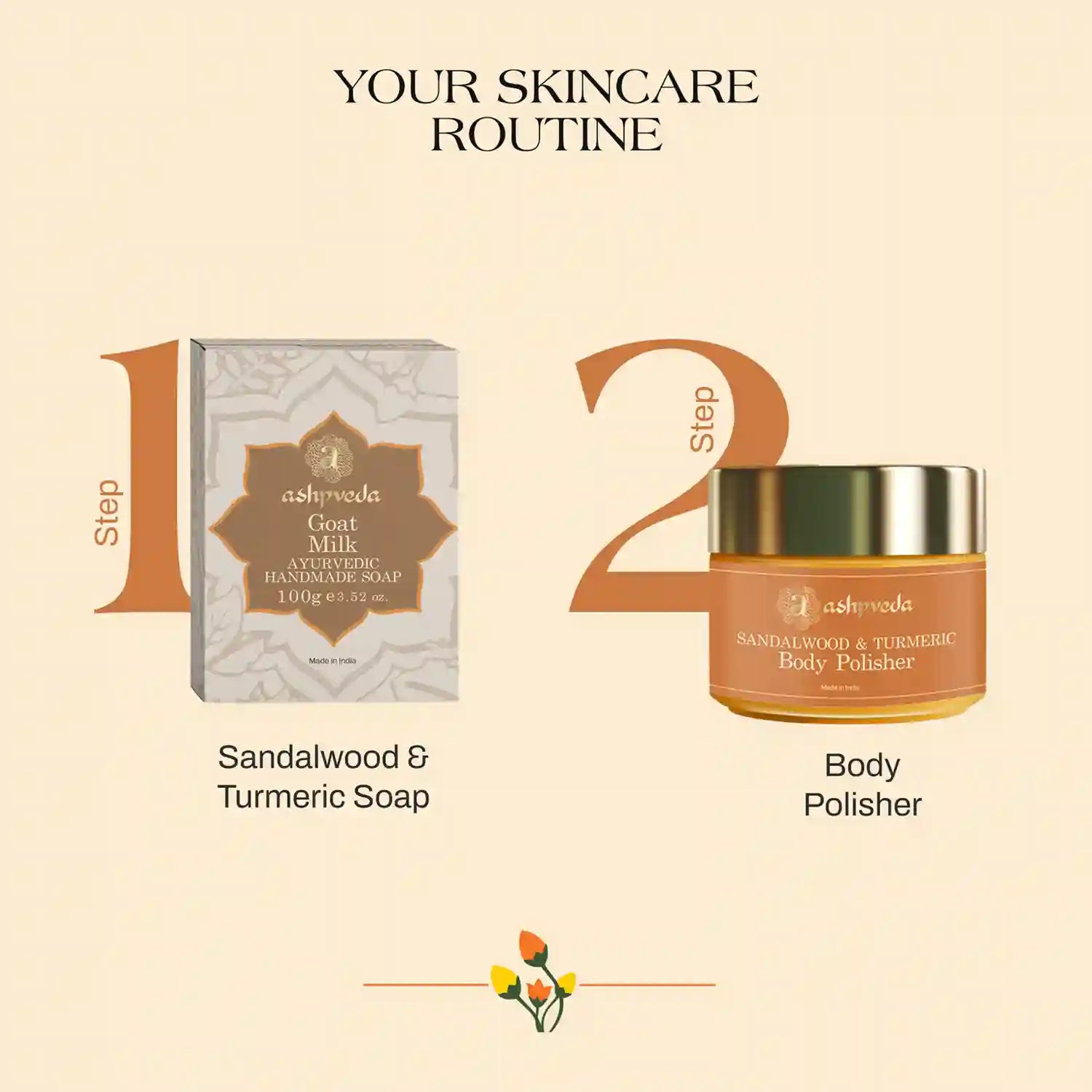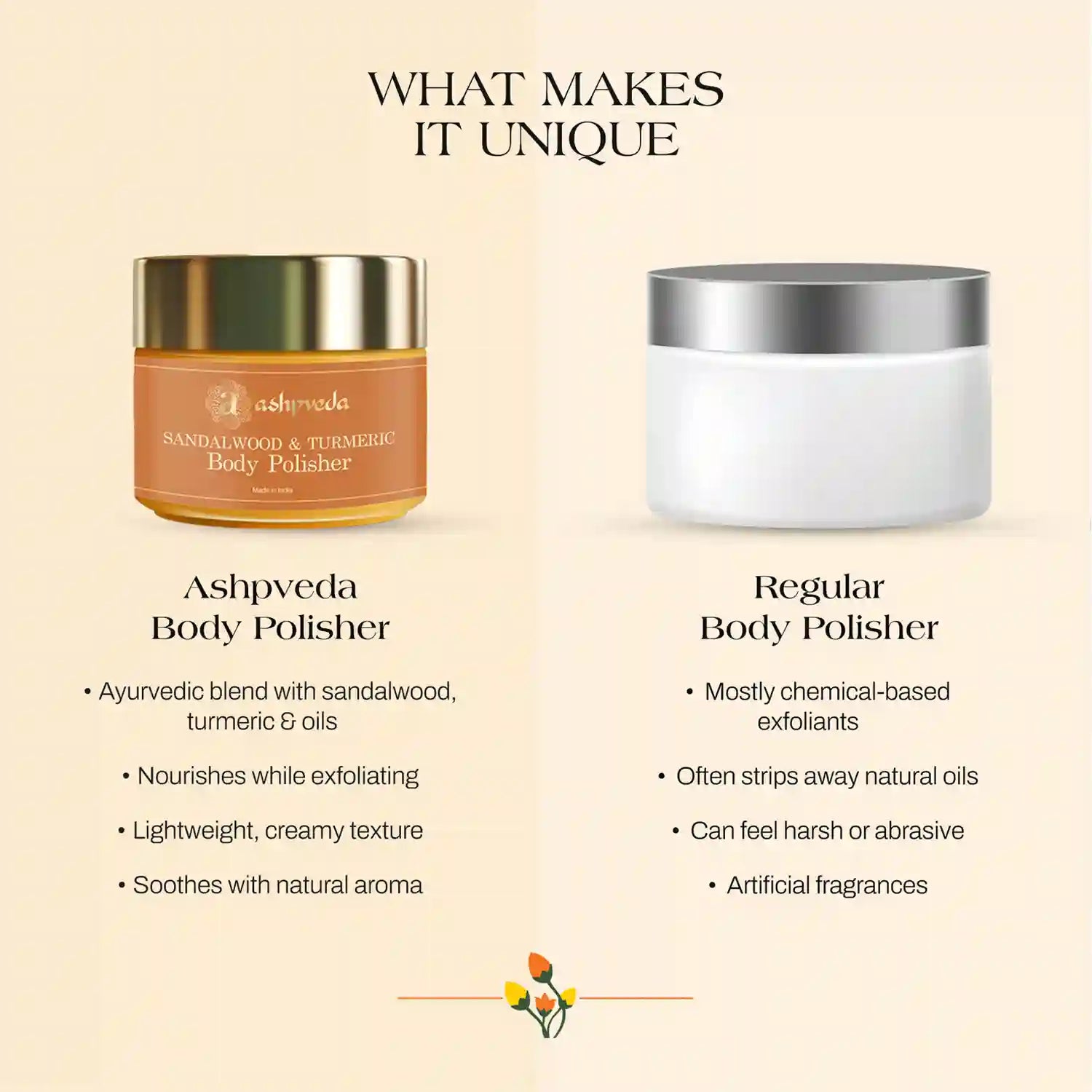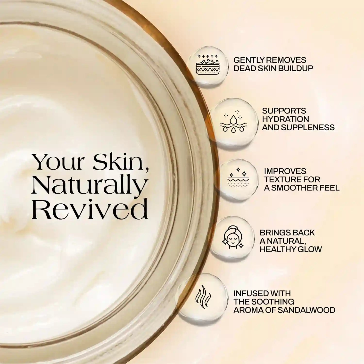 Indulge in the Noorani Body Polisher, a luxurious Ayurvedic scrub blending sandalwood, turmeric, and rich oils with exfoliating sugar and salts for glowing, smooth skin.