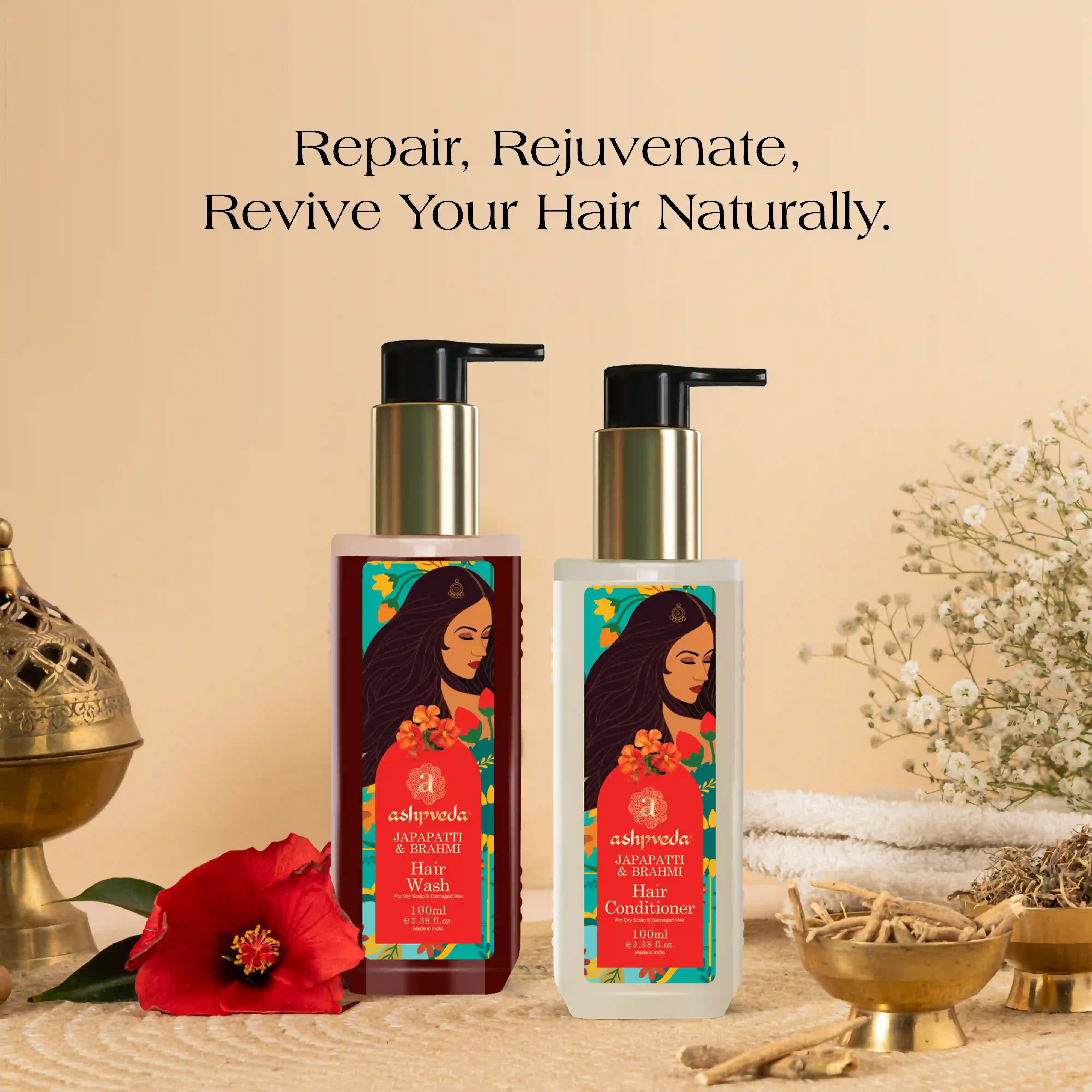 Introducing Essentials Of Japapatti & Brahmi Hair Wash & Conditioner Combo the ultimate solution for those seeking to nourish dry hair. Immerse your hair in the rejuvenating powers of Ayurveda with this specially crafted formula, enriched with the finest ingredients to restore your hair's vitality, strength, and shine. Our Japapatti & Brahmi combines the ancient wisdom of Ayurveda with modern scientific research to provide a comprehensive hair care experience. This unique blend is formulated with precision, featuring two key ingredients known for their remarkable benefits: Japapatti and Brahmi. Dry and matted hair is often a result of external aggressors such as heat styling, environmental factors. Our revitalizing conditioner is specially formulated to combat these concerns, providing intense hydration and restoring your hair's natural moisture balance. Bid farewell to frizz and brittleness as our rich formula works its magic, leaving your hair feeling supple and revitalized.