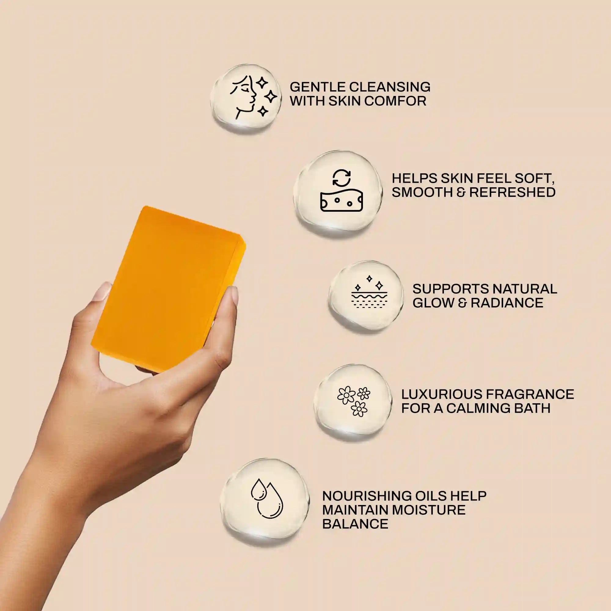 Indulge in luxurious skincare with this Ayurvedic handmade soap, infused with Sandalwood and Saffron to enhance firmness, brightness, and radiance. Enriched with Virgin Coconut Oil, Shea Butter, Almond Oil, and Sesame Oil, it deeply nourishes, rejuvenates, and restores your skin’s natural glow and vitality, leaving it soft, supple, and refreshed.